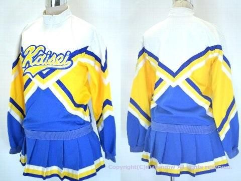 チアリーディング上下とアンダースコートの指定品3点セットです。ほどよい使用感はございますが、特筆するような汚れ・ダメージはありません。Chacott製チア上:SIZE M 肩幅46cm 身幅47cm 着丈57cm 袖丈54cmチアスカート:SIZE M ウェスト66cm ベルト下丈31cmアンダースコート:SIZE M ウェスト51-70cm Natarsia製